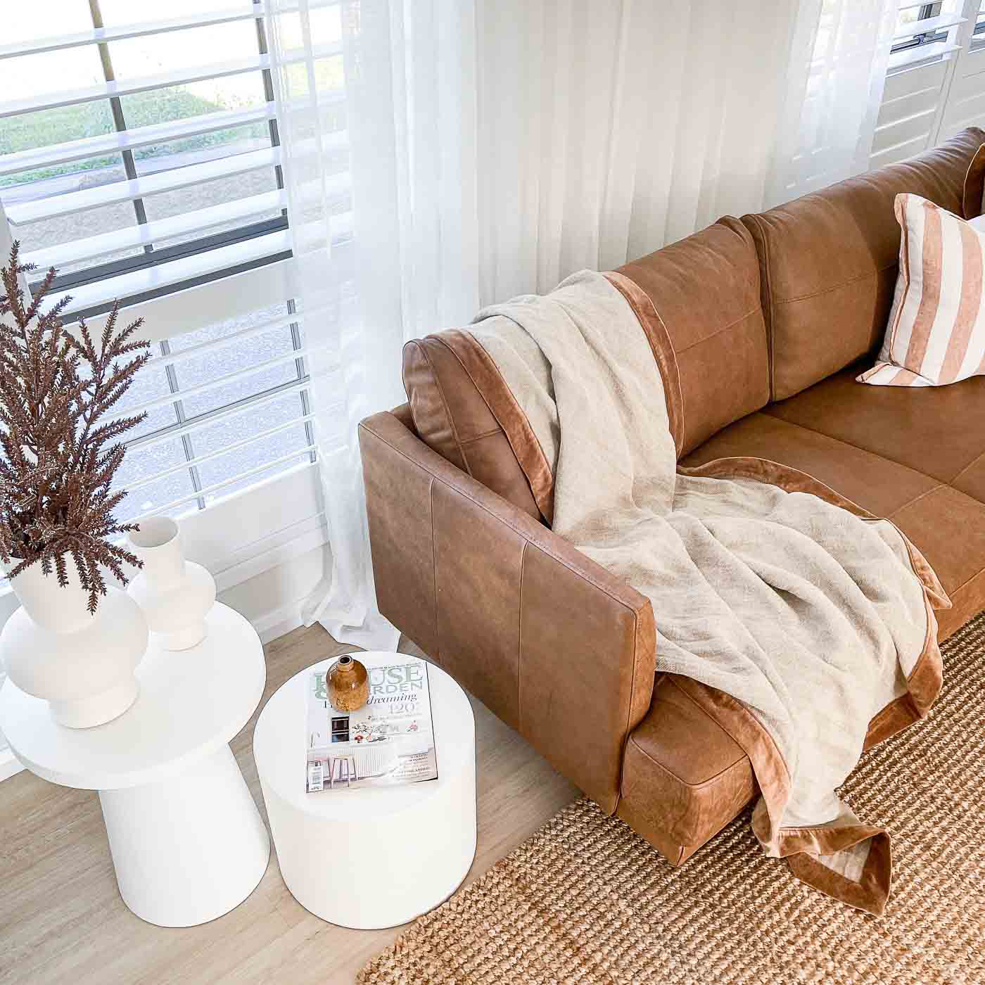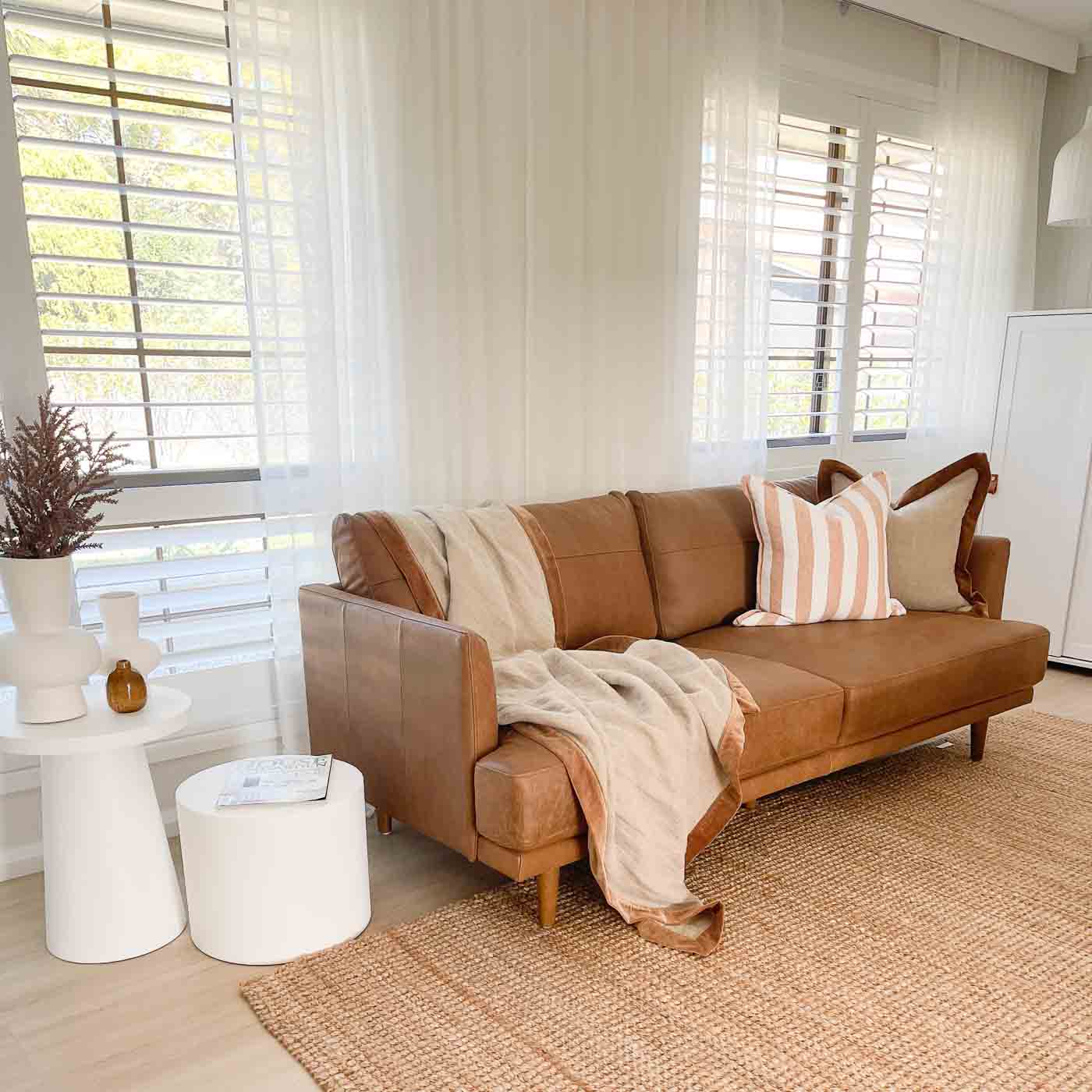 Dina chose the Ruby 3 seat 100% natural leather sofa in our unique brumby leather. Dina says the colour was perfect for her style but she chose the Ruby mainly because the leather was soft and the sofa was comfortable.
