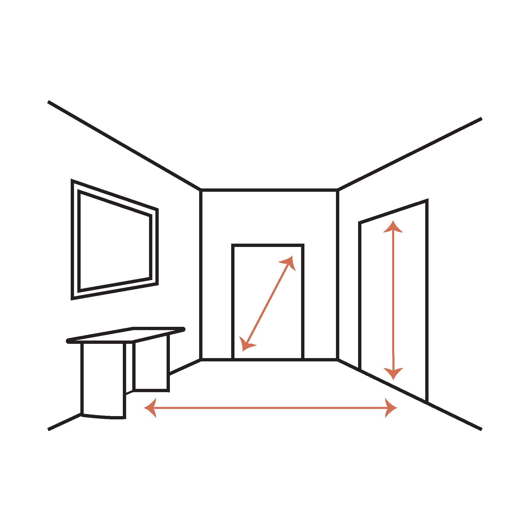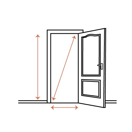 - Obtain the doors clear width by opening the door to 90°and measuring the frame to frame width.