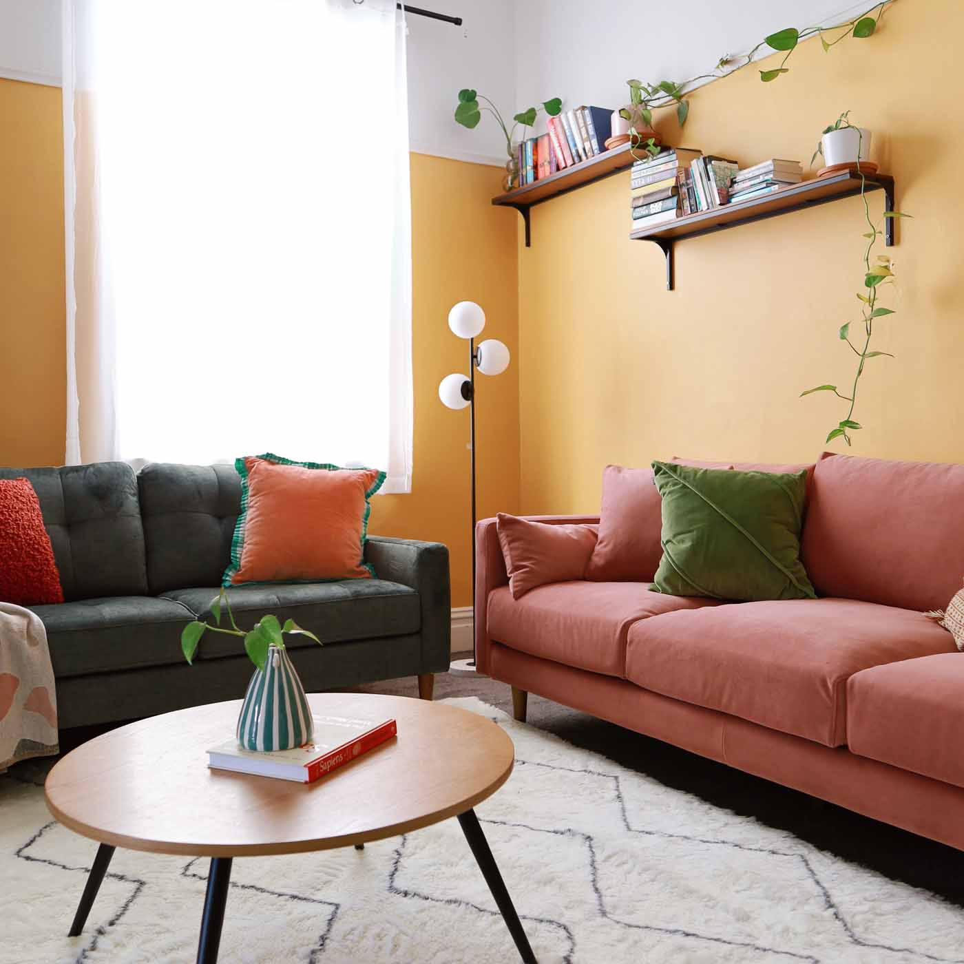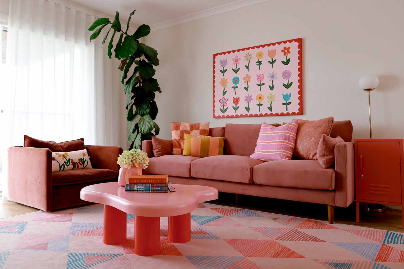 Cass used the Anna 3 seta sofa in Velvet Blush and the Classic 2.5 Seat in Velvet Moss to style her spaces.